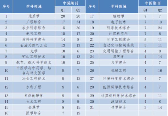 优势学科亮点凸显,多领域发展成效斐然。《WJCI报告》2025版收录中国科技期刊在地质学、工程综合等31个学科表现突出,排名进入前50%的期刊均在10种以上,表明在这些学科领域中国科技期刊发展相对较好、优势显著。