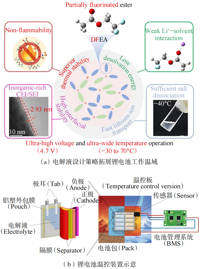 除了材料层面的本征改性,电池管理系统(BMS)与热管理策略的协同是保障电池在宽温域下安全运行的另一道防线。Wang等提出“材料创新+热调控”协同思路的宽温域电池发展策略,显著拓宽了电池安全工作温域,并有望简化传统液冷系统。