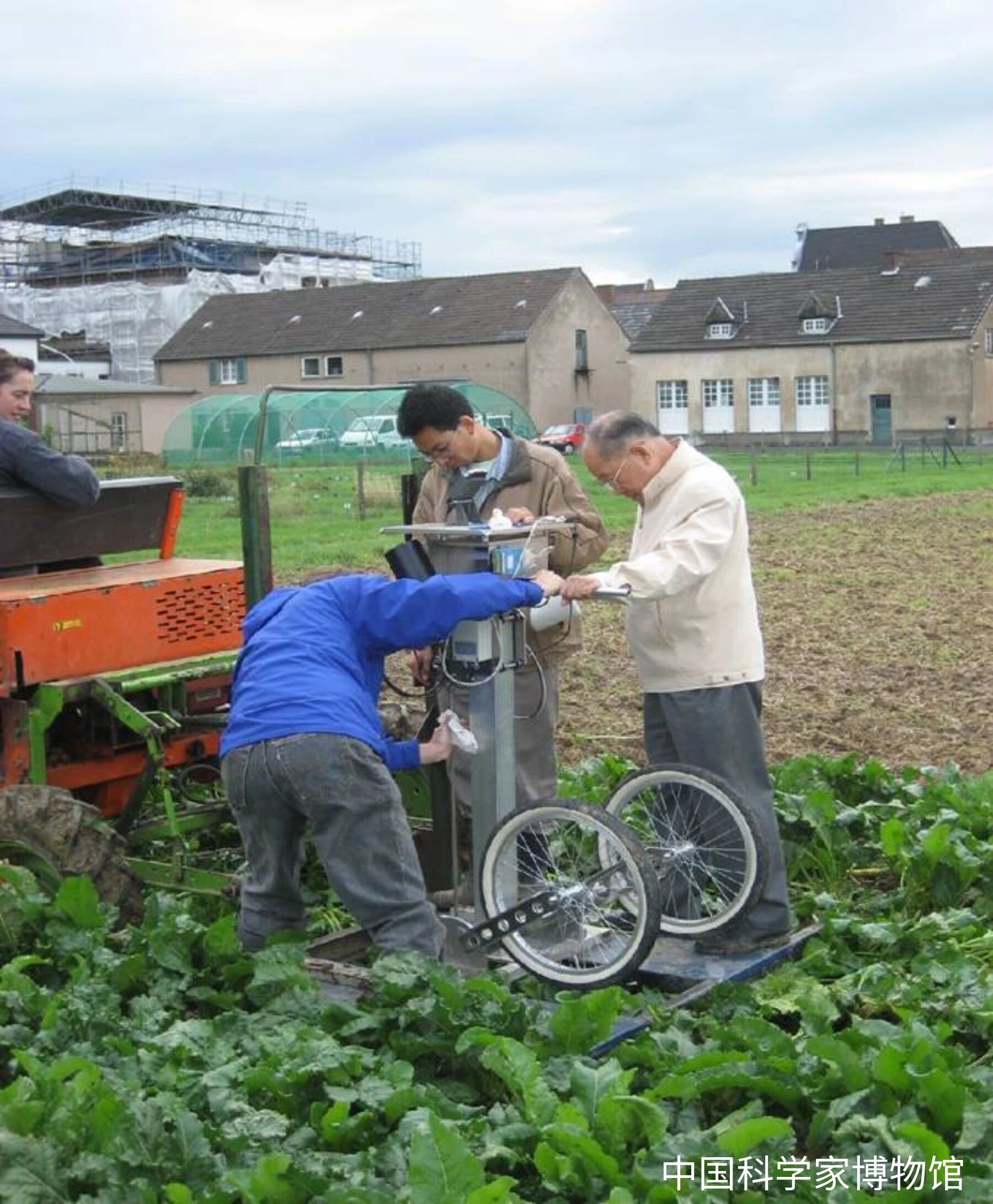汪懋华在田间试验移动式土壤紧实度-水分传感器 来源丨中国科学家博物馆