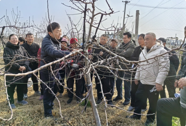这是巨野县科技局组织开展的春季果树生产技术管理培训会暨科技“三下乡”服务活动的现场。当天,来自周边村镇的果农代表、科技特派员等50余人齐聚果园,在“理论讲解+田间实操+互动答疑”中,上了一堂生动的春管“实战课”。