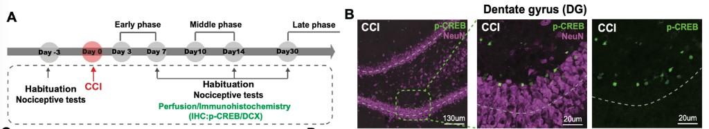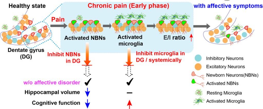 慢性疼痛早期海马齿状回变化的神经机制示意图。复旦大学供图