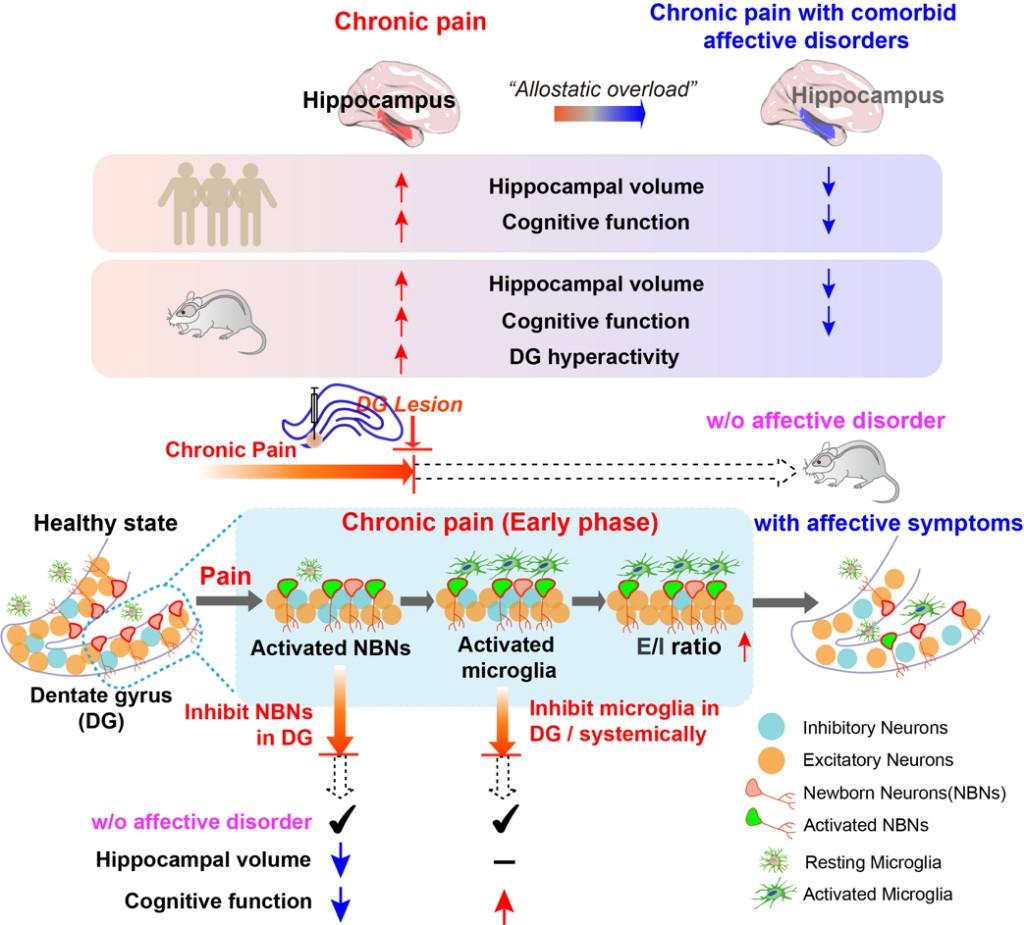 长期被疼痛困扰,为何有人“痛而不抑”,有人却陷入抑郁?复旦大学类脑智能科学与技术研究院认知神经科学中心执行主任肖晓、特聘教授Trevor Robbins及复旦大学类脑智能科学与技术研究院院长冯建峰领衔的团队研究发现,大脑海马区中的一个特殊部位——齿状回,如同控制情绪的“闸门”,其功能状态是决定是否“由痛转郁”的核心。免疫细胞“小胶质细胞”对该闸门的调控异常是导致情绪防线失守的关键环节。这一发现为早期识别高风险人群及开发阻断抑郁发生的新型干预策略提供了全新靶点,相关成果于3月20日发表在国际期刊《科学》上。