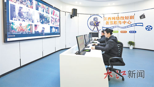 审批流程分散、版权维权滞后,一度拖住微短剧产业发展脚步。赣江新区精准捕捉痛点,打造江西网络微短剧备案服务中心,组建16名“剧管家”服务队伍,推出“3+5”服务模式:备案初审3个工作日、成片预审5个工作日,跑出全国最快审批速度。