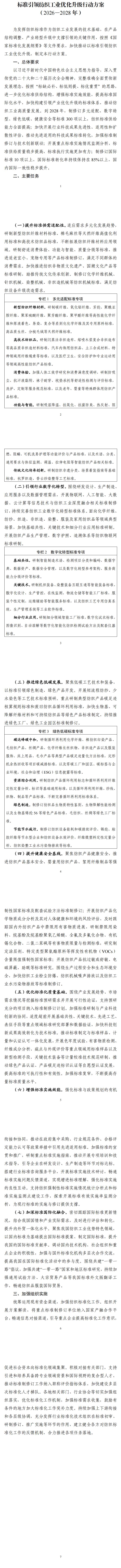 现将《标准引领纺织工业优化升级行动方案(2026—2028年)》印发给你们,请结合实际,抓好贯彻落实。