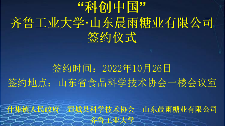 “科创中国”—齐鲁工业大学·山东晨雨糖业有限公司签约仪式
