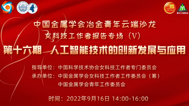 中国金属学会冶金青年云端沙龙第十六期-女科技工作者专场【人工智能技术的创新发展与应用】