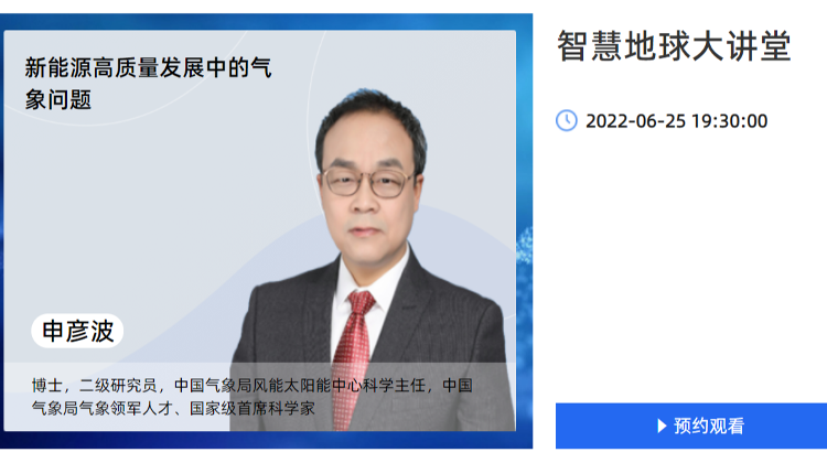 【智慧地球大讲堂】第155期:申彦波,新能源高质量发展中的气象问题