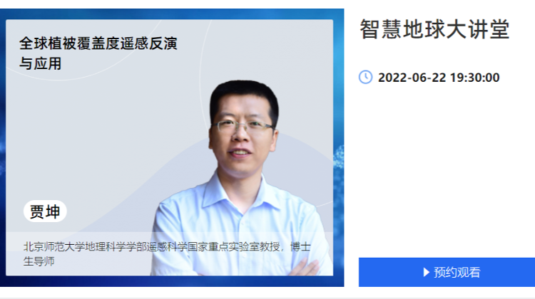 【智慧地球大讲堂】第154期:贾坤,全球植被覆盖度遥感反演与应用