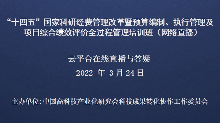 “十四五”国家科研经费管理改革暨预算编制、执行管理及项目综合绩效评价全过程管理培训班(3月24日网络直播)