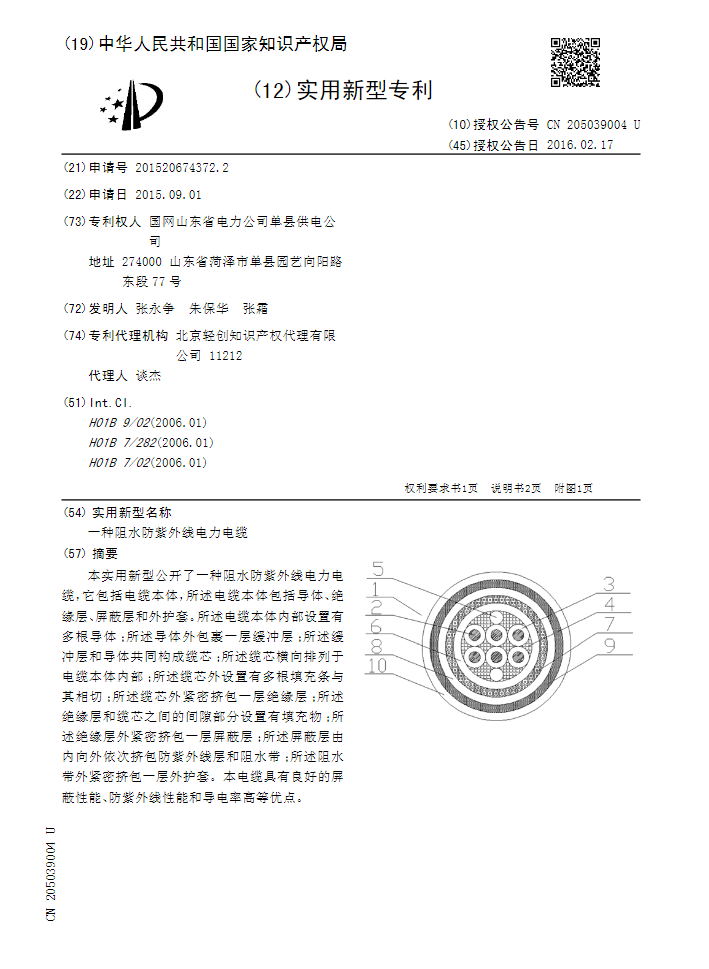 一种阻水防紫外线电力电缆