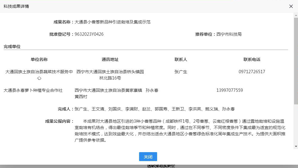 大通县小香葱新品种引进栽培及集成示范