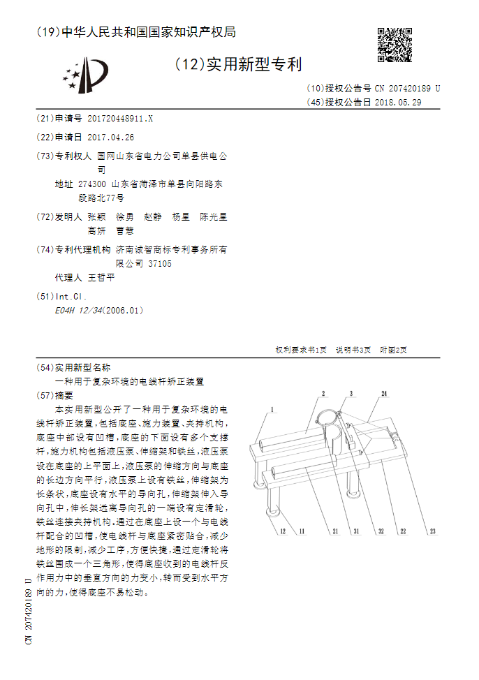 一种用于复杂环境的电线杆矫正装置