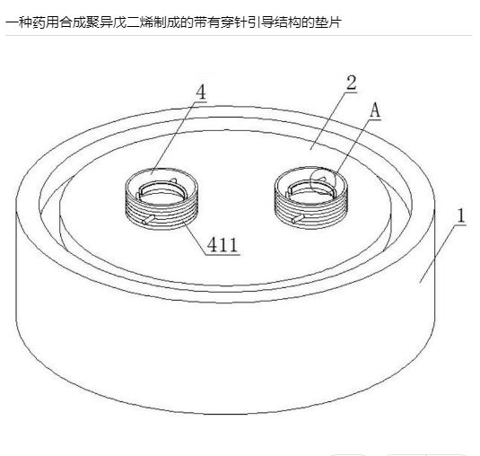 药用合成聚异戊二烯制成的带有穿针引导结构的垫片