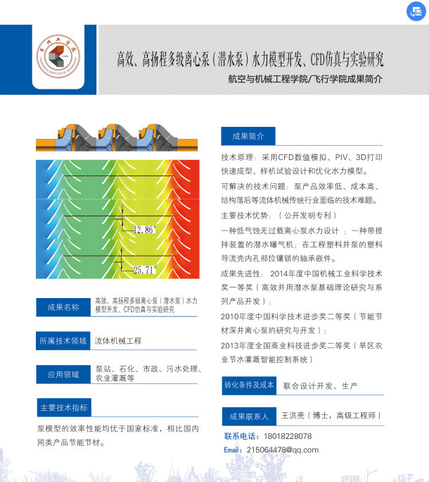 高效、高扬程务级离心泵(潜水泵)水力模型开发、CFD仿真与实验研究