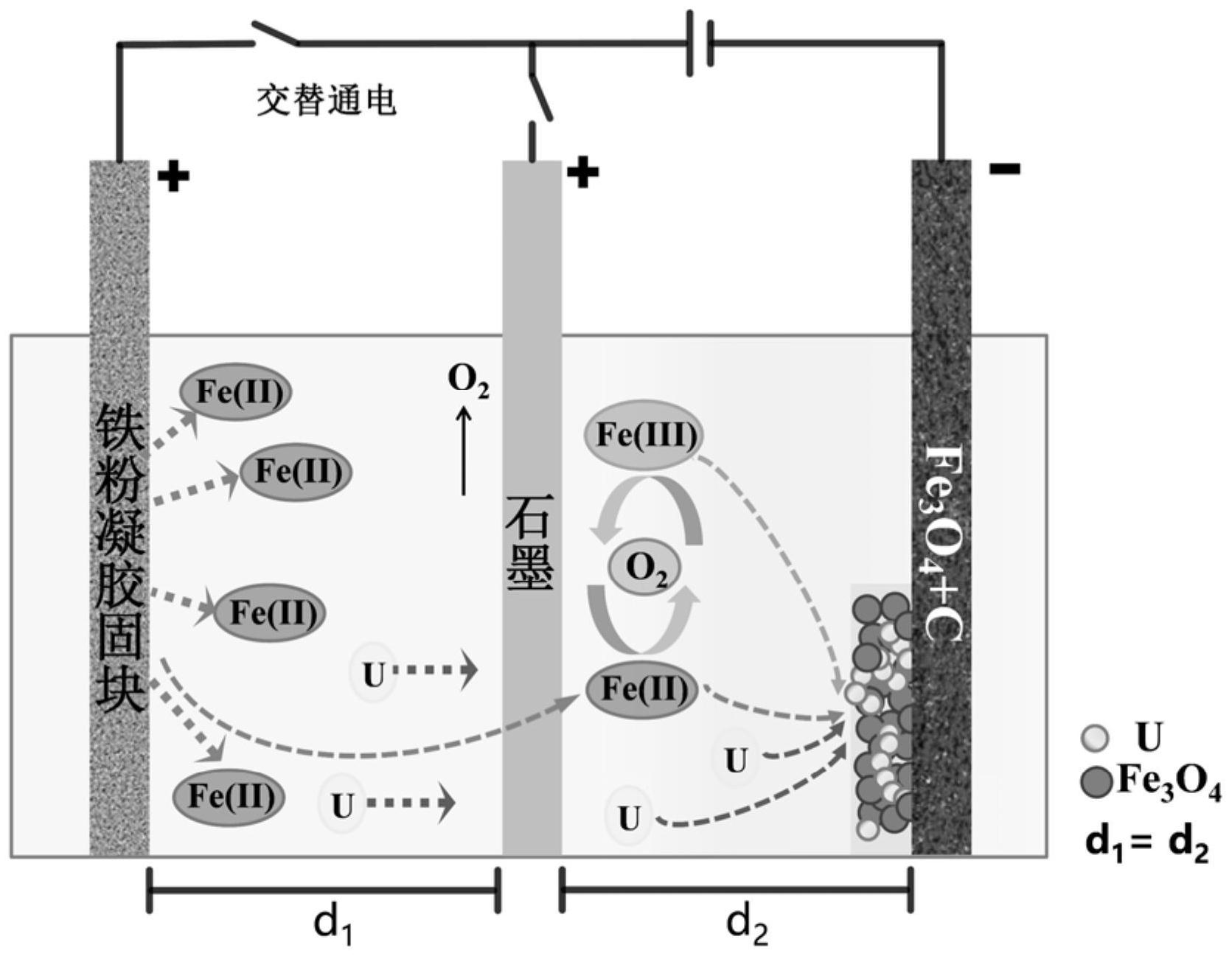 交替式双阳极矿化去除低浓度含铀废水中铀的装置及方法