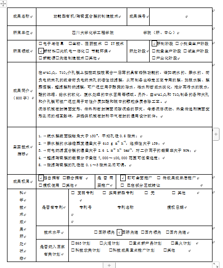 功能型有机/陶瓷复合膜的制造技术 成果编号