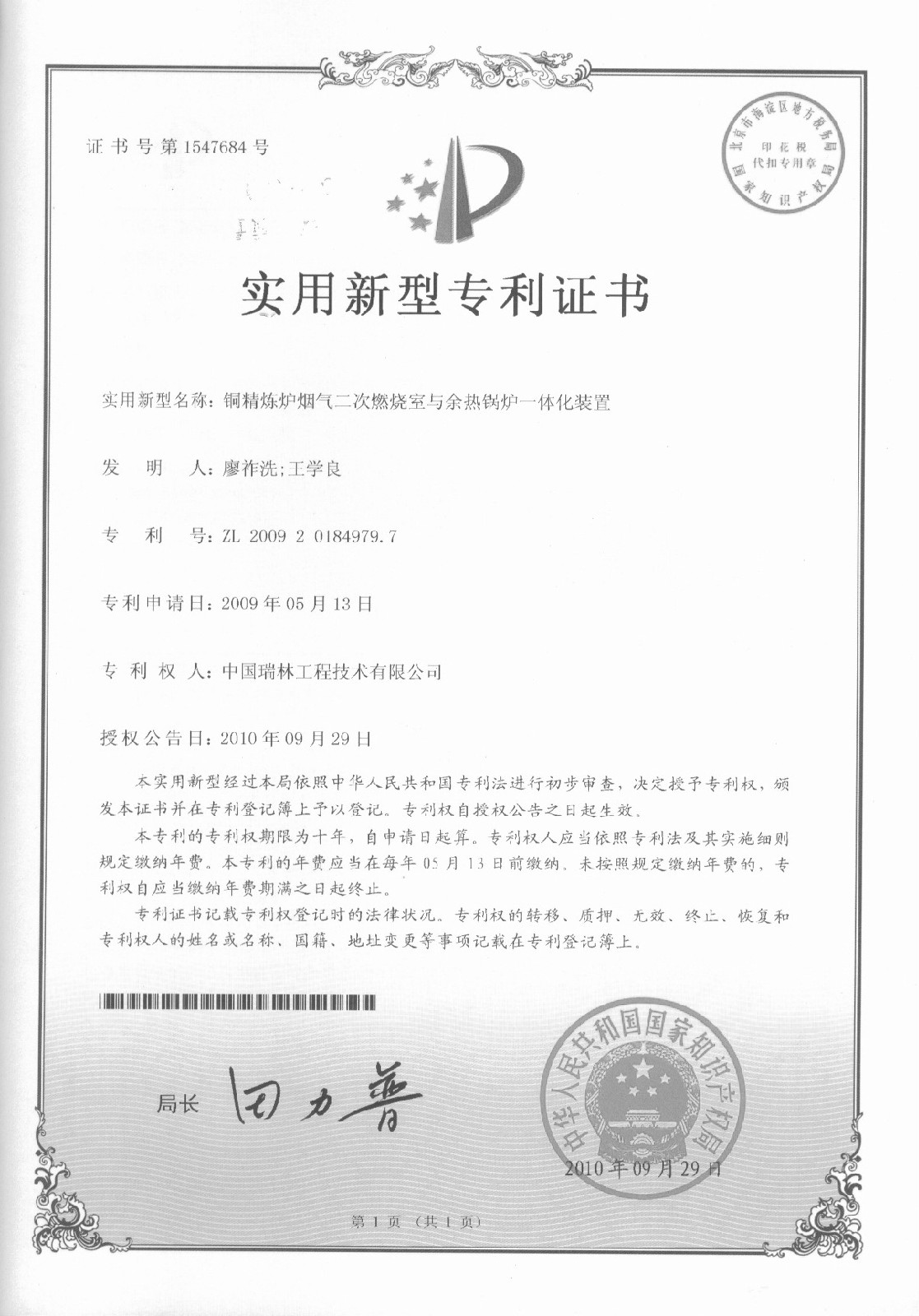 铜精炼炉烟气二次燃烧室与余热锅炉一体化装置