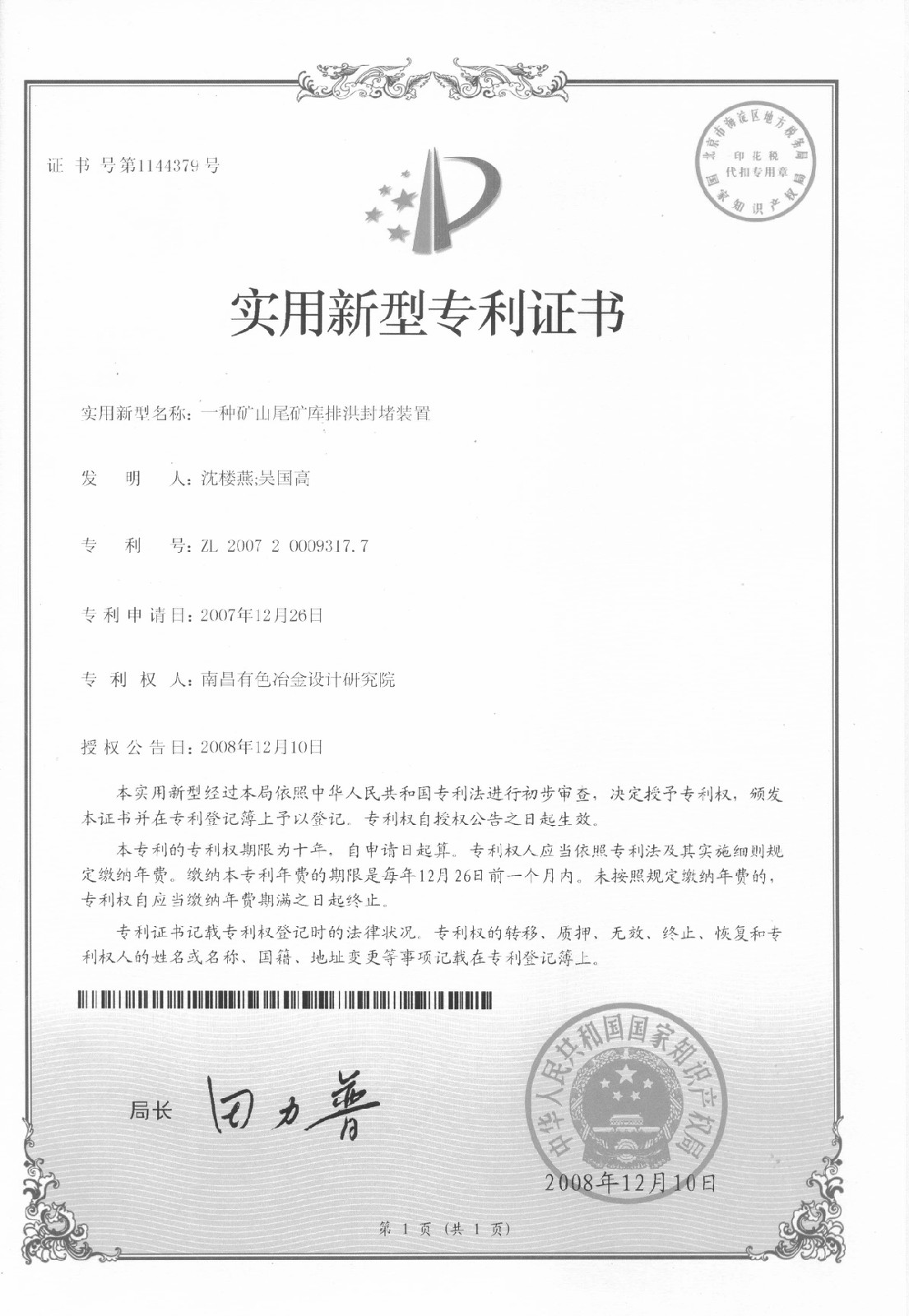 尾矿库双联保排洪装置