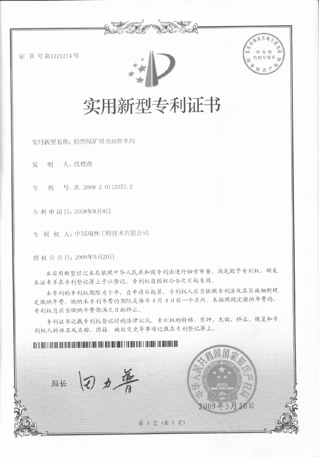 轻型尾矿坝坝面排水沟