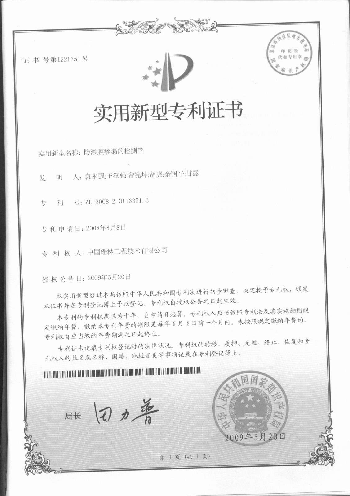 防渗膜渗漏的检测管