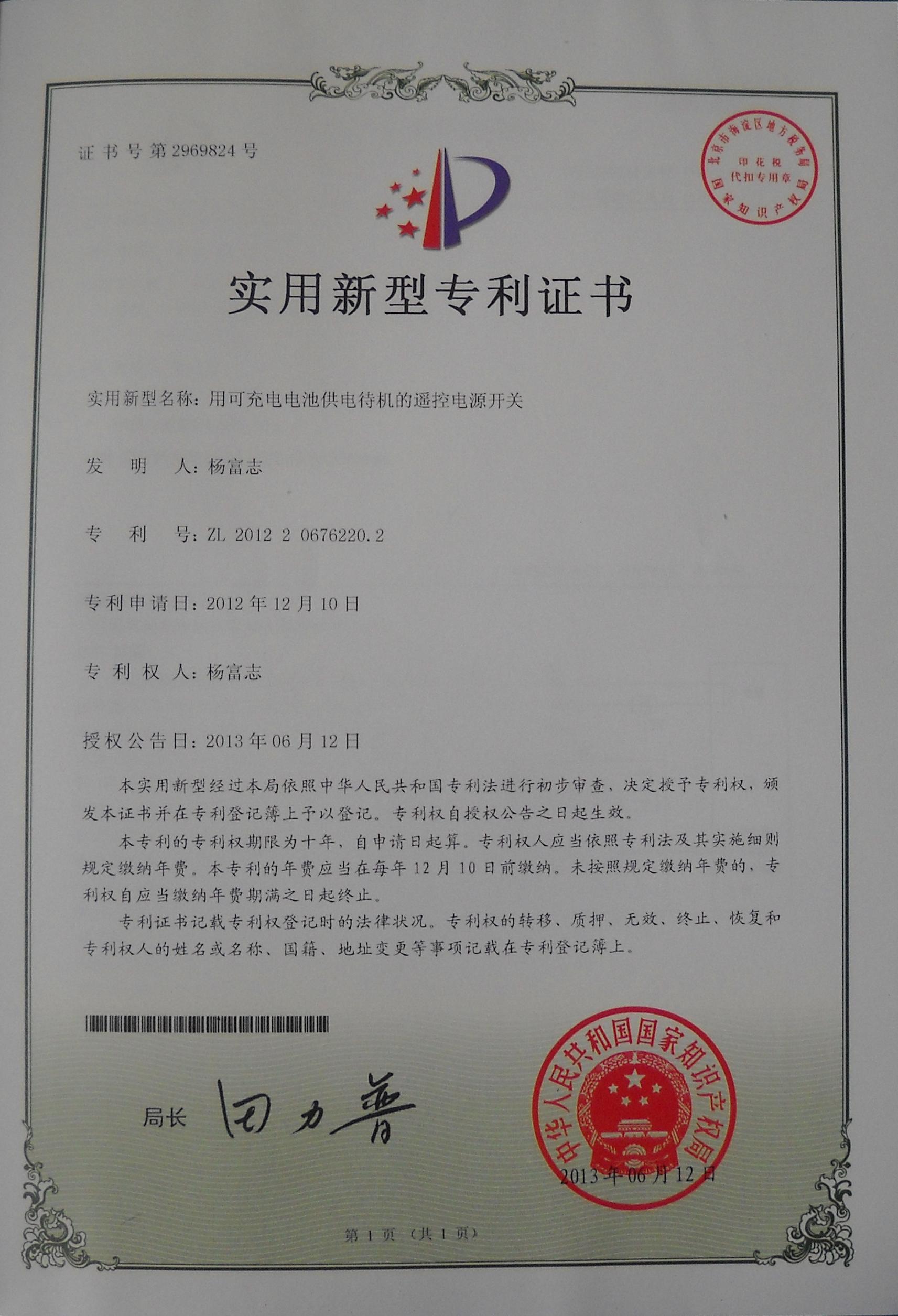用可充电电池供电待机的遥控电源开关