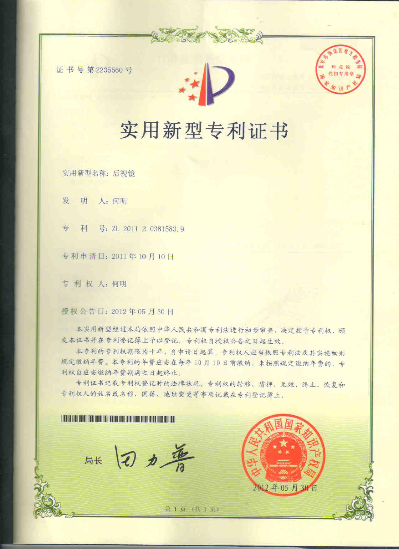 专利名称: 后视镜
