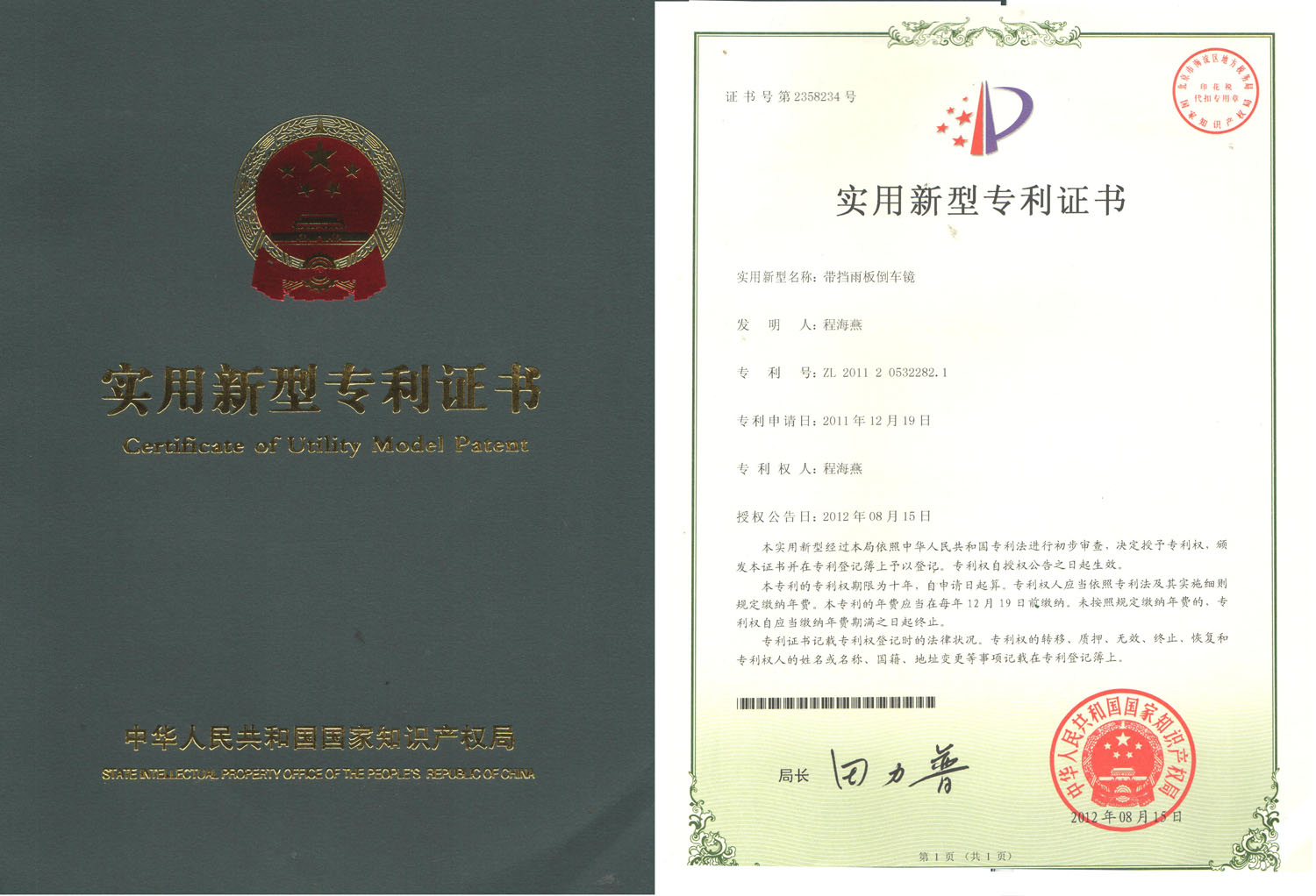 带挡雨板倒车镜