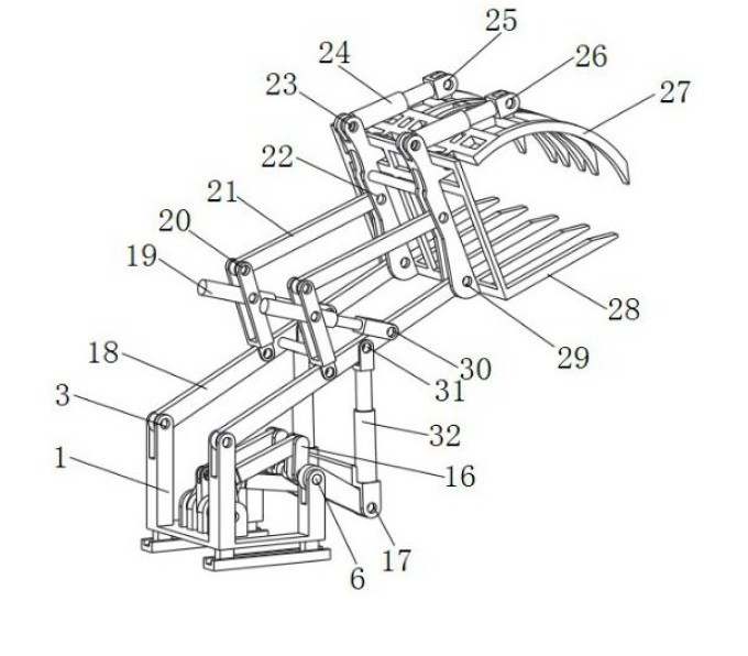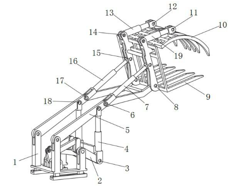一种多单元连杆驱动简易高负载叉木机