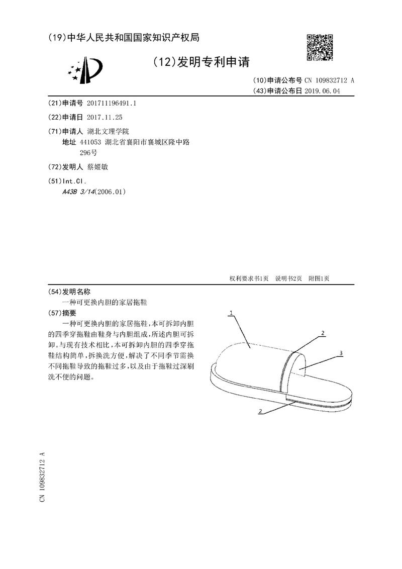 一种可更换内胆的家居拖鞋