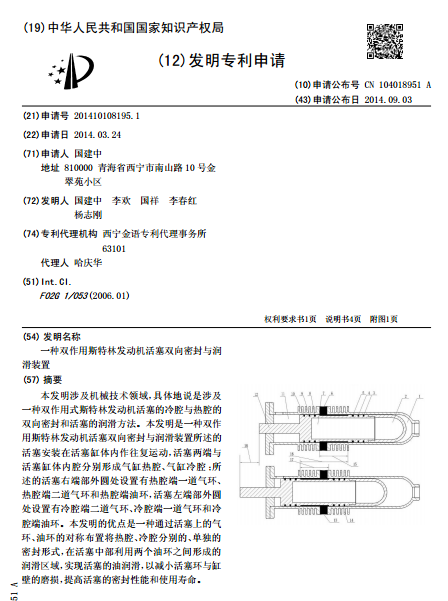 一种双作用斯特林发动机活塞双向密封与润滑装置