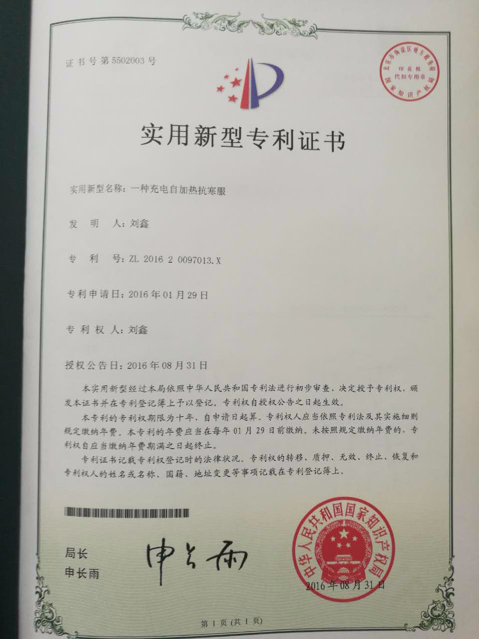 一种充电自加热抗寒服