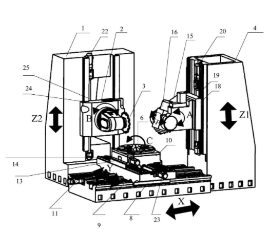 整体叶盘复合数控铣削双立柱结构机床