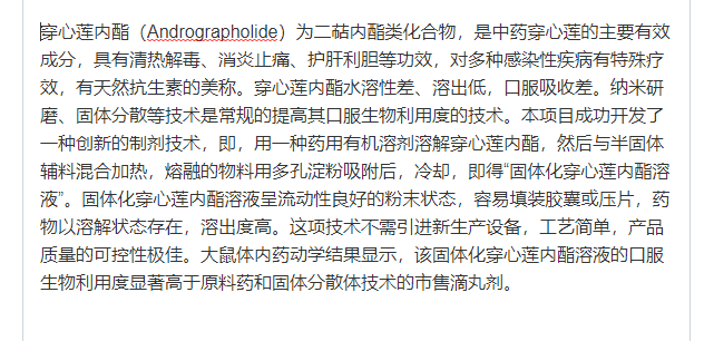 以多孔淀粉为吸附剂的固体化穿心莲内酯溶液