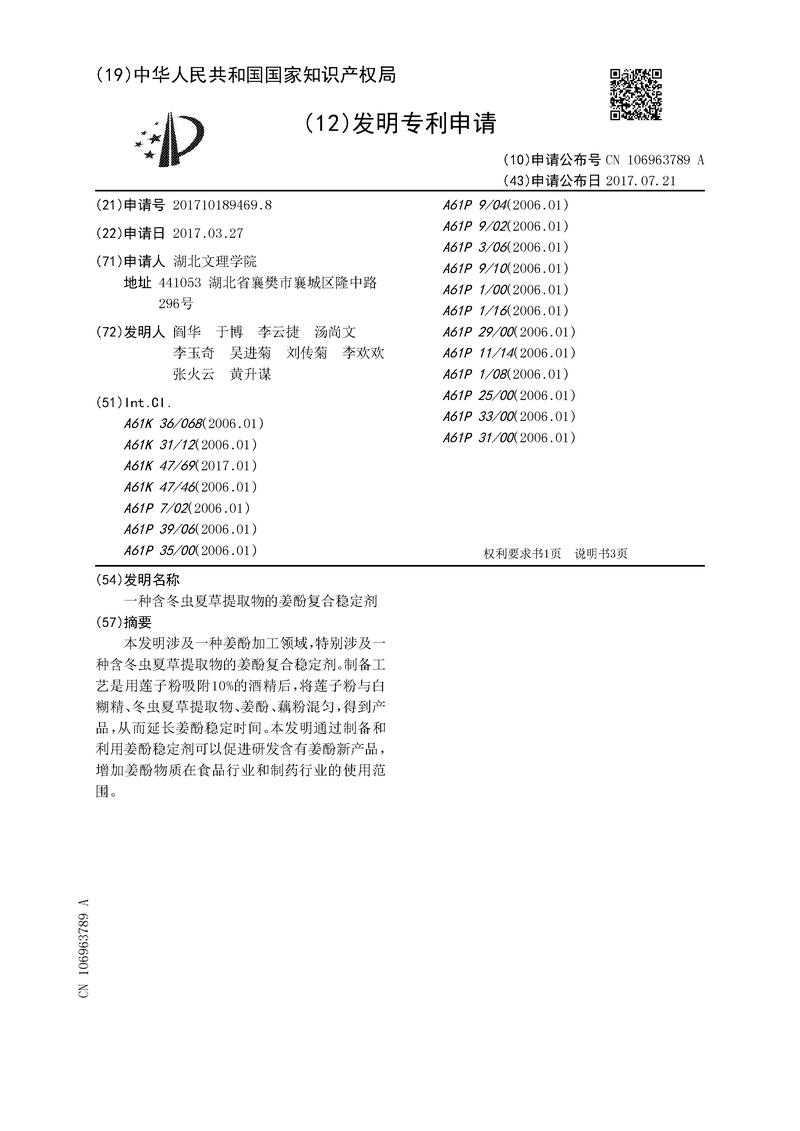 一种含冬虫夏草提取物的姜酚复合稳定剂