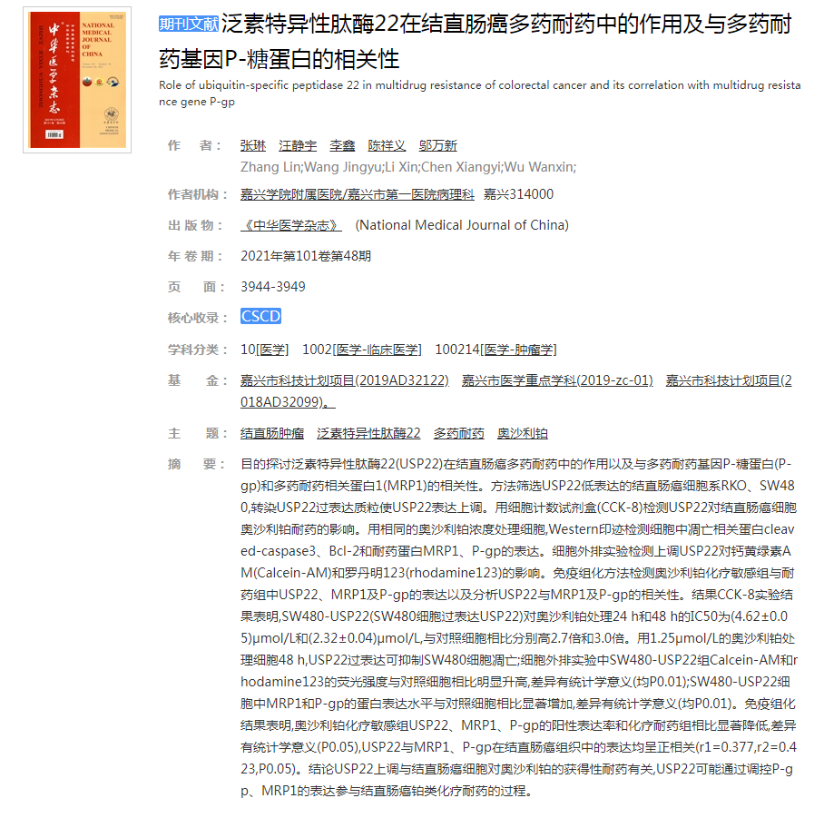 泛素特异性肽酶22在结直肠癌多药耐药中的作用及与多药耐药基因P-糖蛋白的相关性