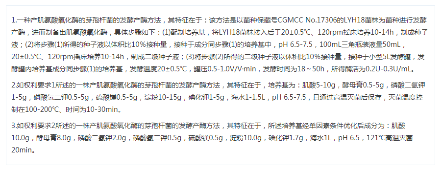 一种产肌氨酸氧化酶的芽孢杆菌的发酵产酶方法