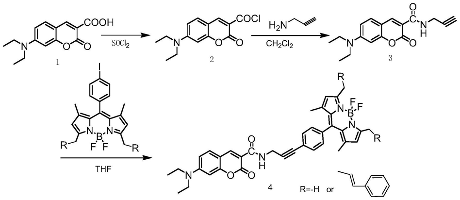 一类基于氟硼吡咯和香豆素的FRET分子及其合成方法