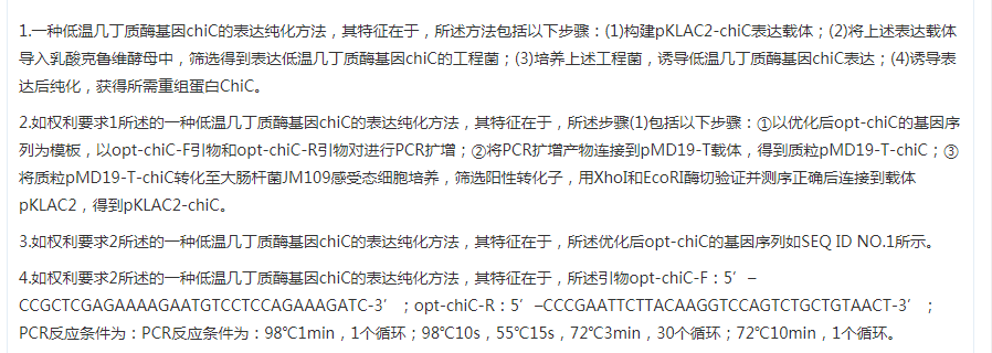 低温几丁质酶基因chiC在乳酸克鲁维酵母中的表达纯化方法