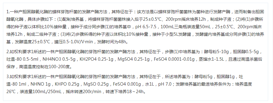 一种产胆固醇氧化酶的蜡样芽孢杆菌的发酵产酶方法