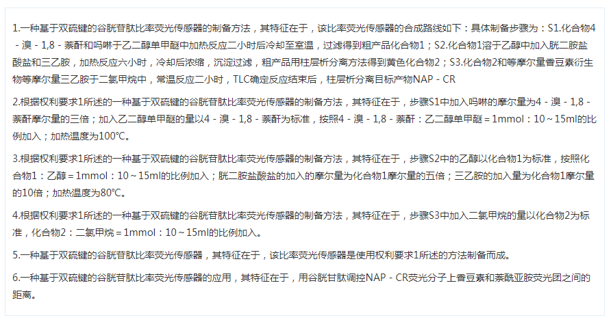 一种基于双硫键的谷胱苷肽比率荧光传感器及其制备和应用