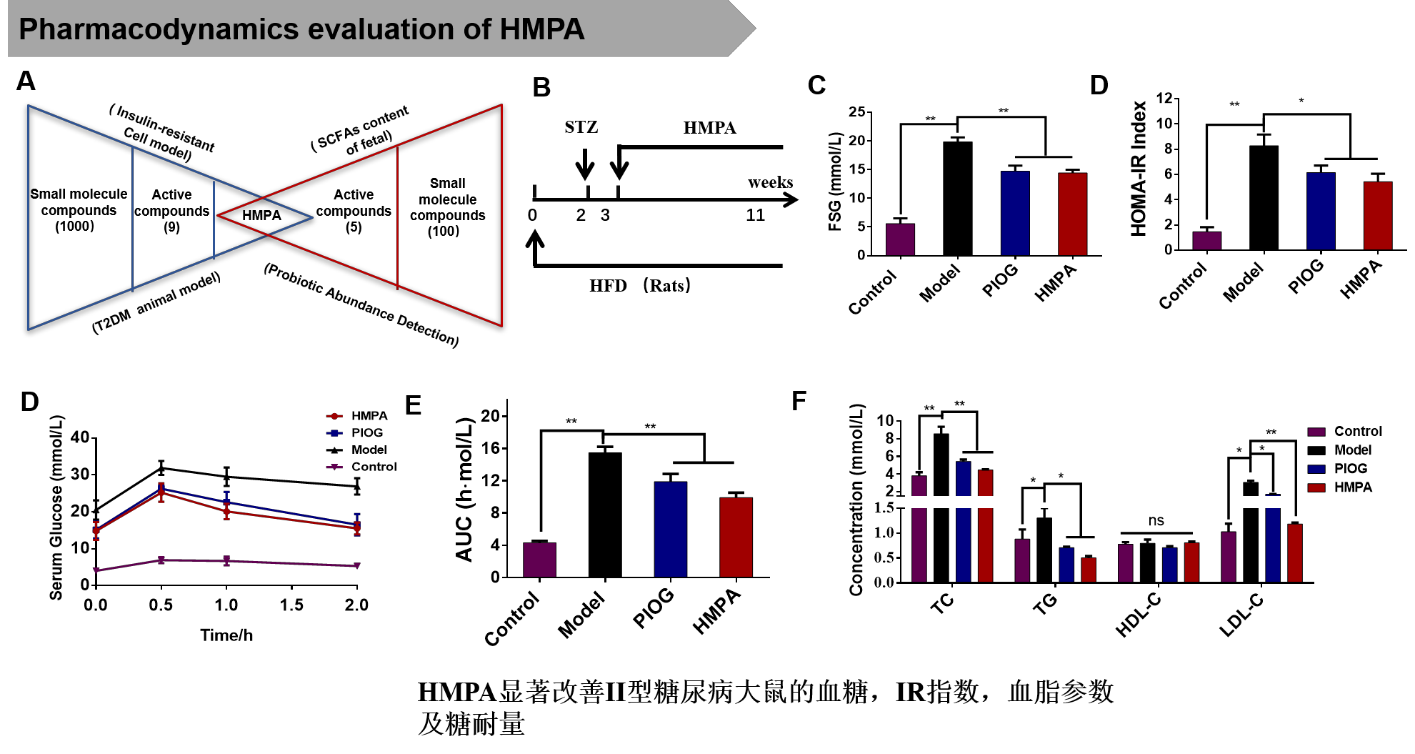 靶向肠道菌群的II型糖尿病治疗药物(HMPA)