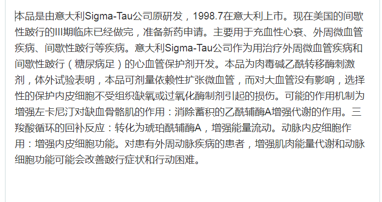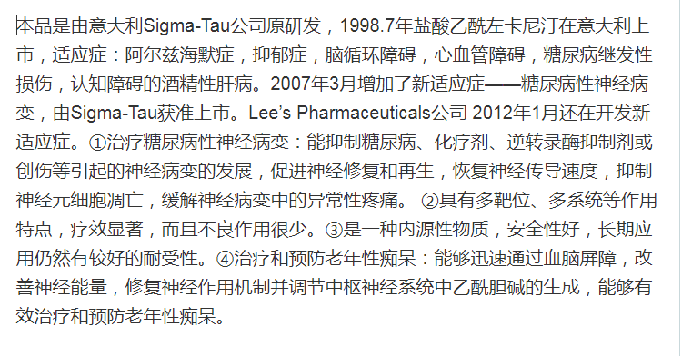 盐酸乙酰左卡尼汀原料、肠溶片及注射用