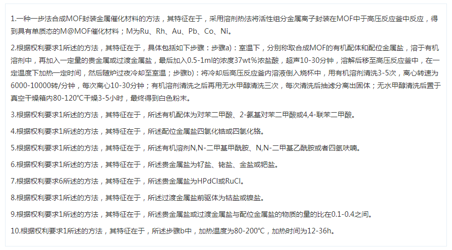 一种一步法合成MOF封装金属催化材料的方法