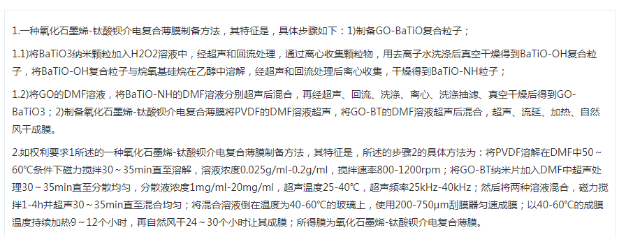 一种氧化石墨烯-钛酸钡介电复合薄膜及其制备方法