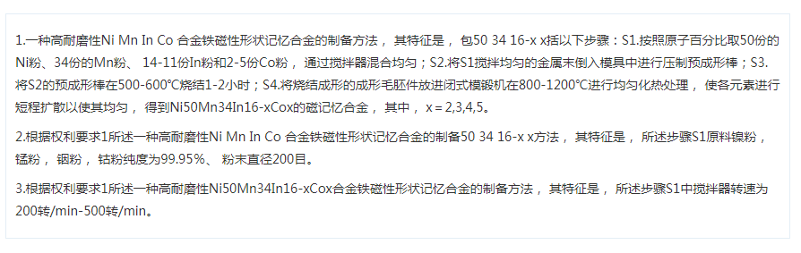一种高耐磨性NiMnInCo磁记忆合金的制备方法