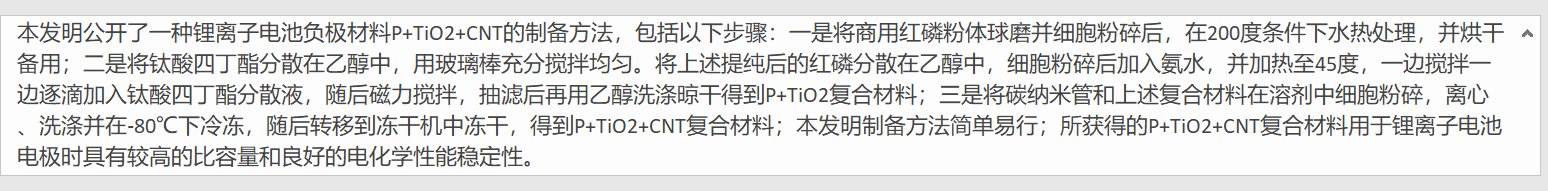 一种锂离子电池负极材料P+TiO2+CNT的制备方法