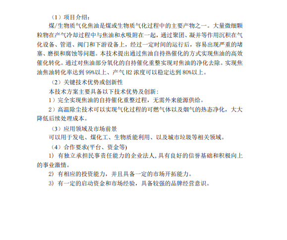煤/生物质气化焦油催化制氢技术