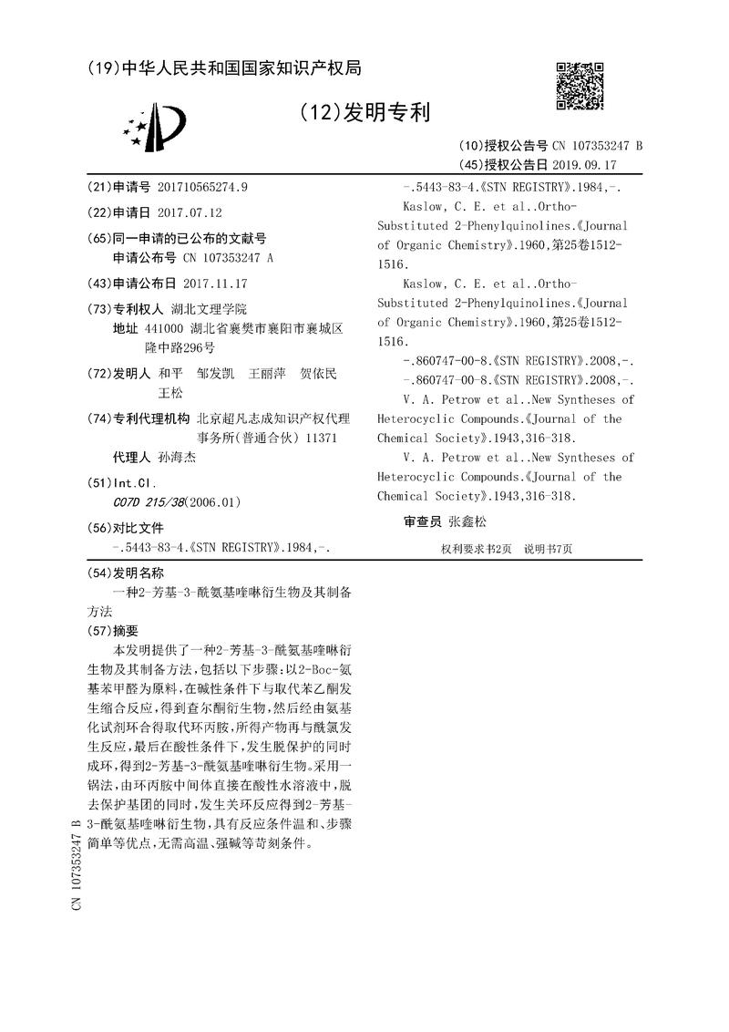 一种2-芳基-3-酰氨基喹啉衍生物及其制备方法