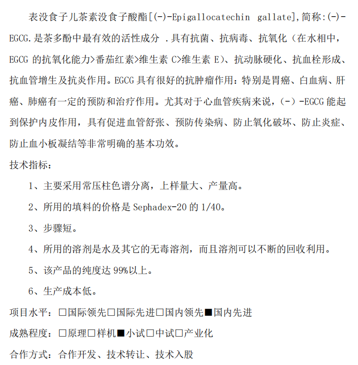 表没食子儿茶素没食子酸酯 EGCG 的分离制备工艺