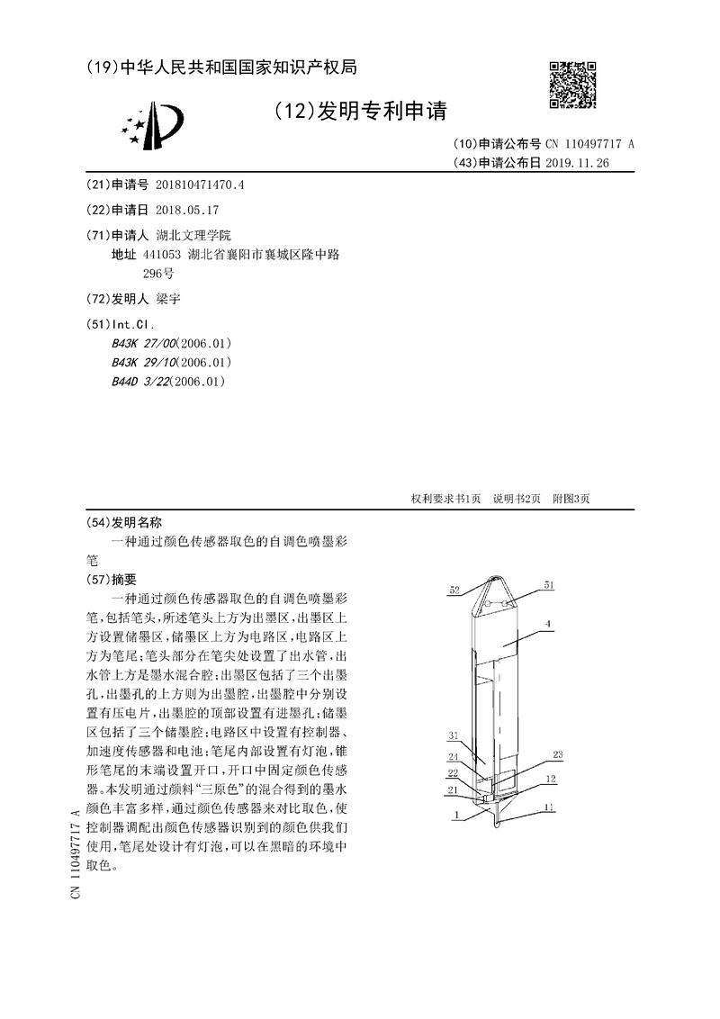 一种通过颜色传感器取色的自调色喷墨彩笔
